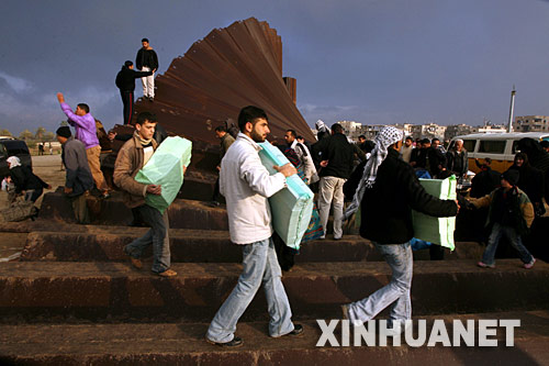 当天凌晨,巴武装人员炸毁拉法边境隔离墙,数千名巴勒斯坦人涌入埃及境内采购食品、香烟和汽油等日用品。 新华社记者纳赛尔摄
